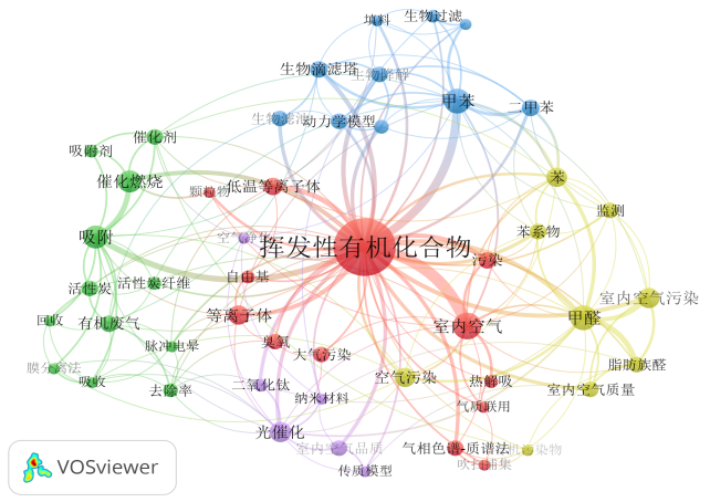 以每5年為一個(gè)時(shí)間周期,采用共詞聚類方法分析自1991年以來(lái)我國(guó)VOCs領(lǐng)域研究熱點(diǎn)及熱度變化可知:
