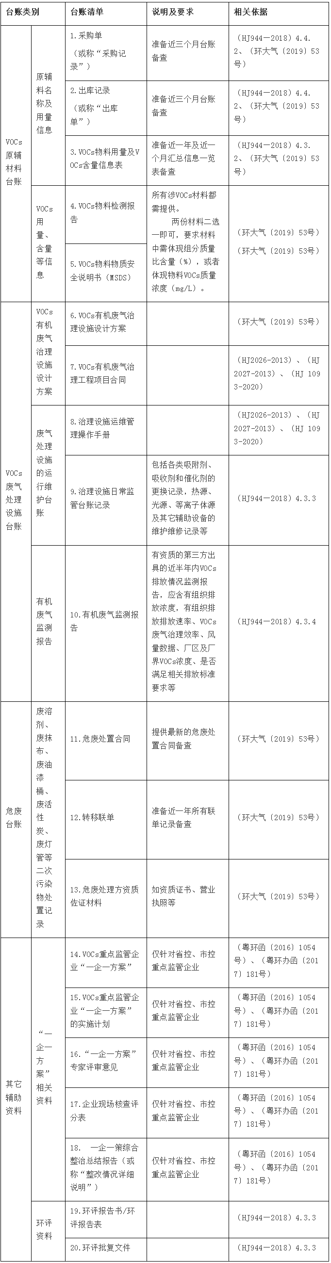 附件:重點(diǎn)監(jiān)管企業(yè)VOCs管控臺(tái)賬清單