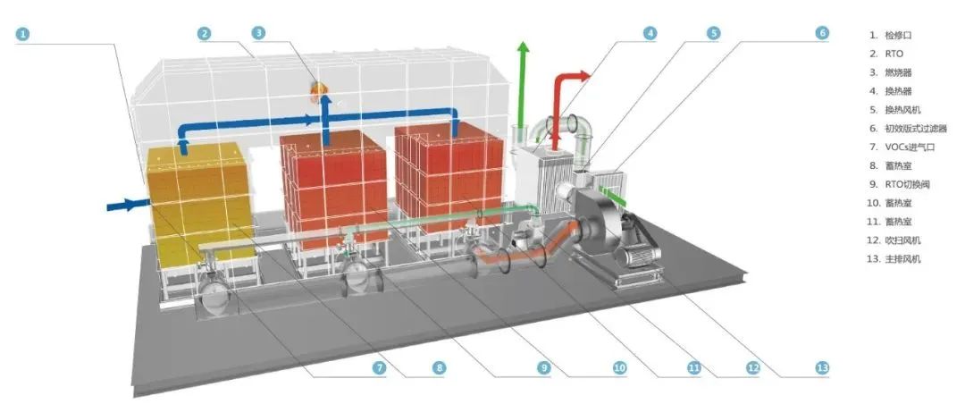 作為燃燒裝置,其能耗是最值得關注的指標之一,因此在RTO發(fā)展的歷程中熱回收的效率至關重要。從最初的直火燃燒裝置,換熱式氧化裝置,再到蓄熱氧化裝置。