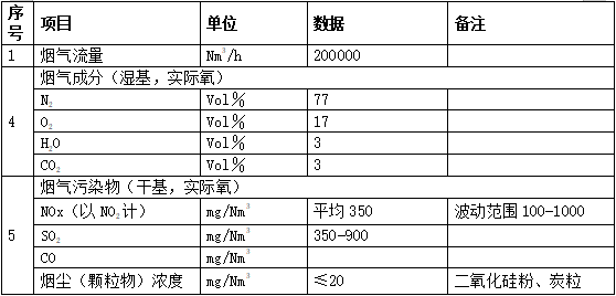 冶煉電爐煙氣成分復(fù)雜,氮氧化物與硫氧化物含量均較高,可參考的煙氣參數(shù)見表1