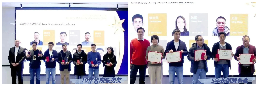 2022年度優(yōu)秀員工頒獎盛典也借此契機同期舉行,對過去一年工作中有突出表現(xiàn)的集體及個人予以表彰,鼓勵他們務(wù)實創(chuàng)新、勇創(chuàng)佳績!