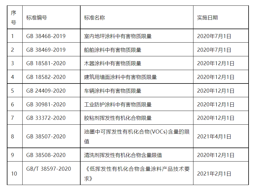 表1 相關(guān)行業(yè)產(chǎn)品VOCs含量限值標(biāo)準(zhǔn)