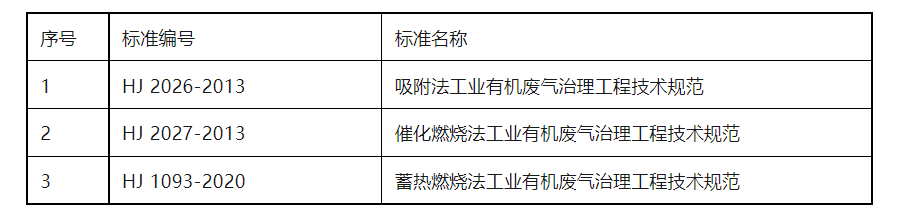 表3 VOCs治理工程技術(shù)規(guī)范標(biāo)準(zhǔn)