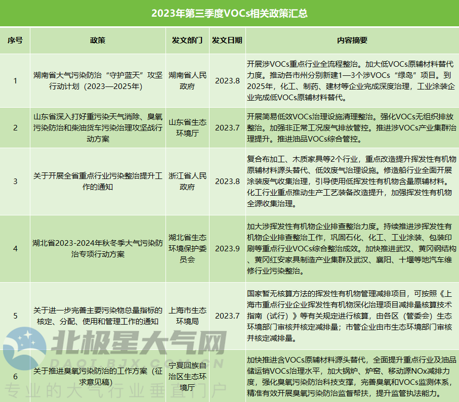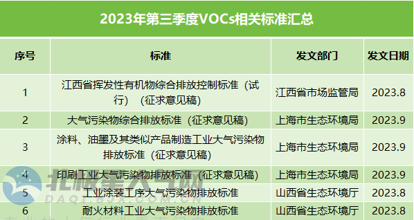 2023年第三季度VOCs相關(guān)標(biāo)準(zhǔn)匯總